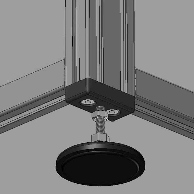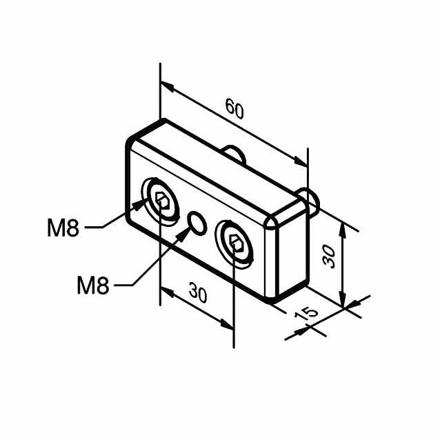 Base plate 30x60 M08 for mounting hinged feet and wheels on aluminium profiles, providing flexible and stable support for various constructions.
