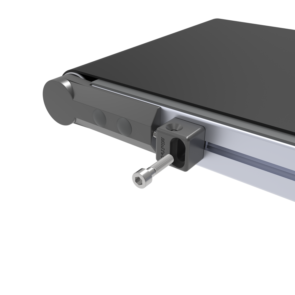 • Zategnite transportni trak tako, da odvijete zatični vijak; po potrebi ponovno nastavite orodje