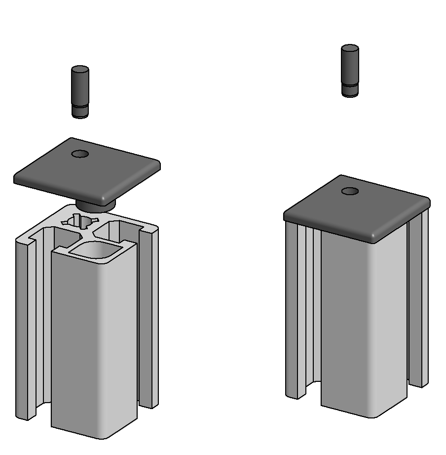 Nadomestni zatič za pritrditev plastičnih zaključnih pokrovov na aluminijaste profile.