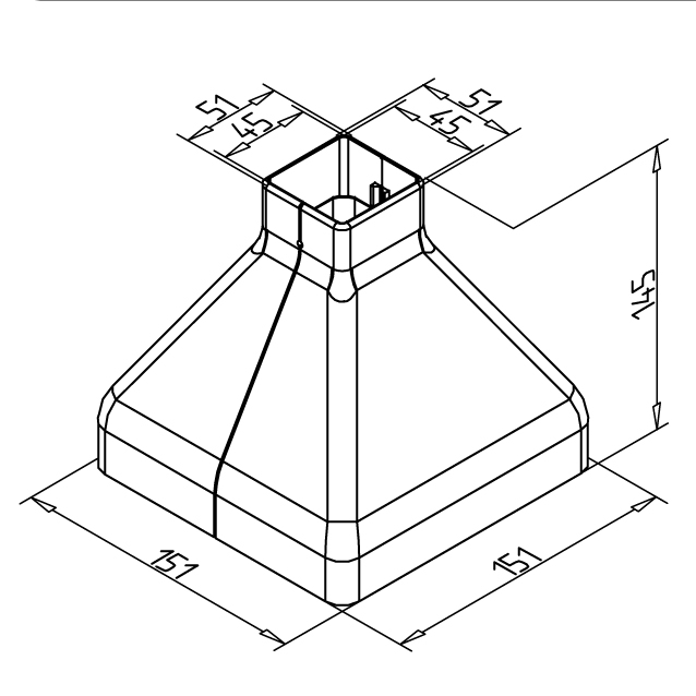 Cover for foot 45 to protect and give a clean finish to support feet of aluminum structures.