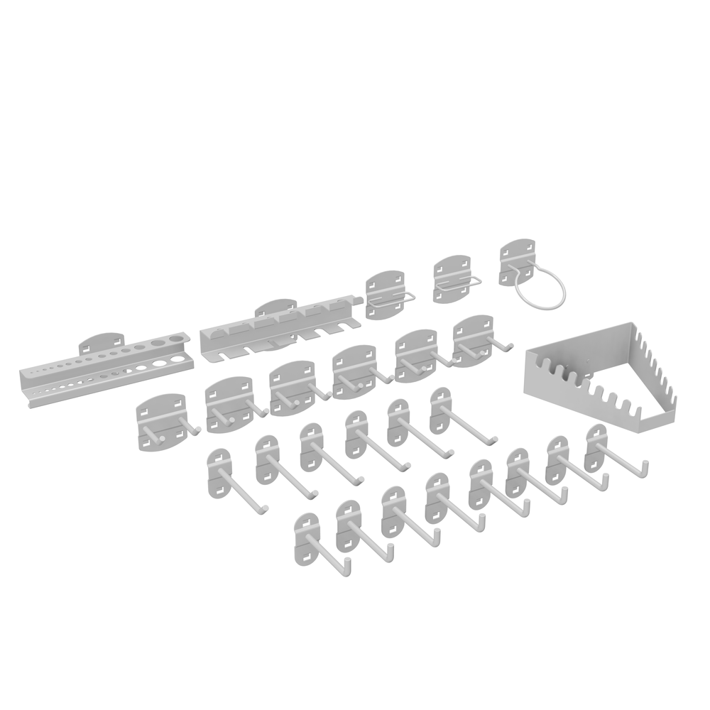 Obešala za orodje v 26-delnem setu zagotavljajo učinkovito razporeditev, več prostora in pregledno delovno okolje.