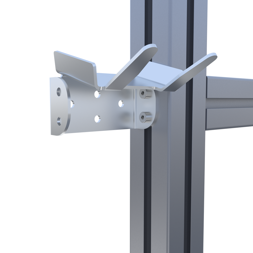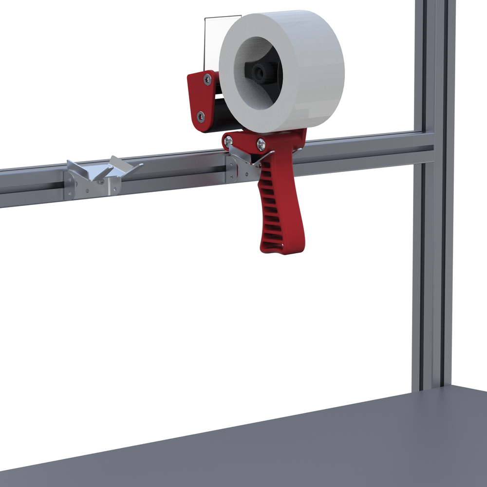 • Nosilec se uporablja za shranjevanje ročnih valjev za paketni trak na delovnem mestu. Prostorsko varčen in priročno nameščen na profilu zagotavlja red in čistočo.
