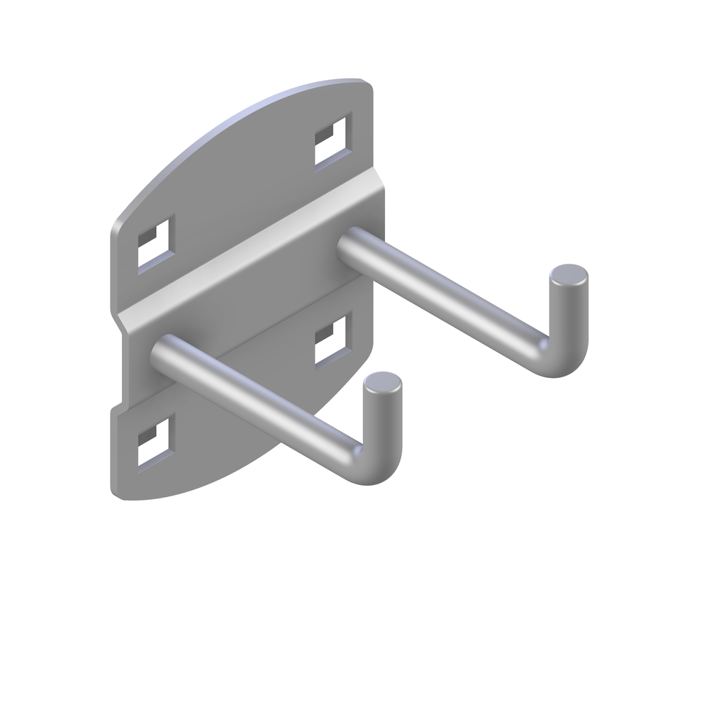 Dvojno obešalo z ravnim kavljem 50 mm prihrani prostor, omogoča hitro odlaganje manjšega orodja in ohranja red.