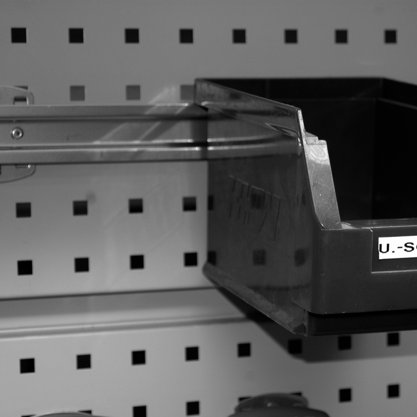 Držalo za zaboje za vijake in orodje omogoča pregledno shranjevanje, hiter dostop in boljšo organizacijo drobnega materiala na delovni postaji.