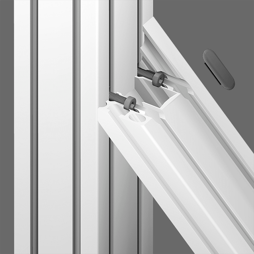 Ojačitveni element 45, dolžine 360 mm, z možnostjo pozicijskega fiksiranja za močno in natančno povezavo profilov.