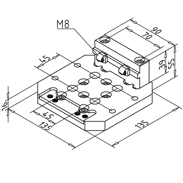 Pritrdilni komplet 90 S-A 90° za linearna vodila z vozički zagotavlja stabilno in učinkovito namestitev aks v alu konstrukcije.