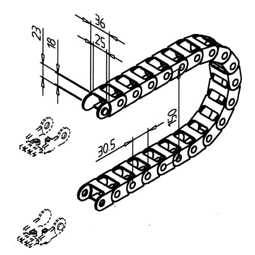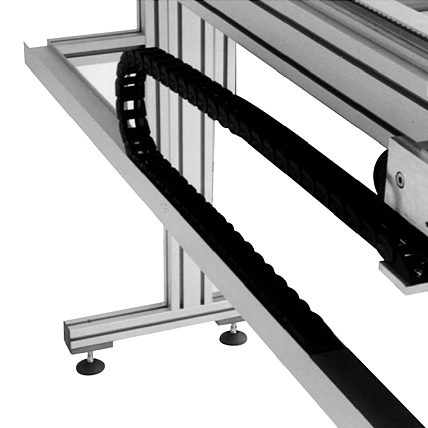 • Energetska veriga za pritrditev kablov in cevi na drsnike ter gibljive elemente