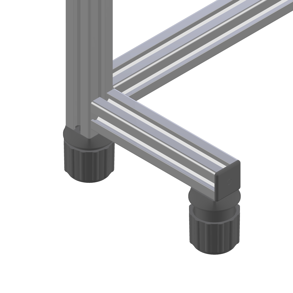 Compact adjustable foot for aluminium profiles series 30, providing stable and sleek mounting for smaller frame constructions in industrial applications