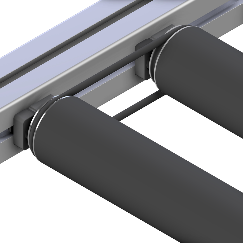 • Pogon valjev med seboj izvedite preko utora v kompletih ležajev. Po možnosti uporabite za nedostopna mesta