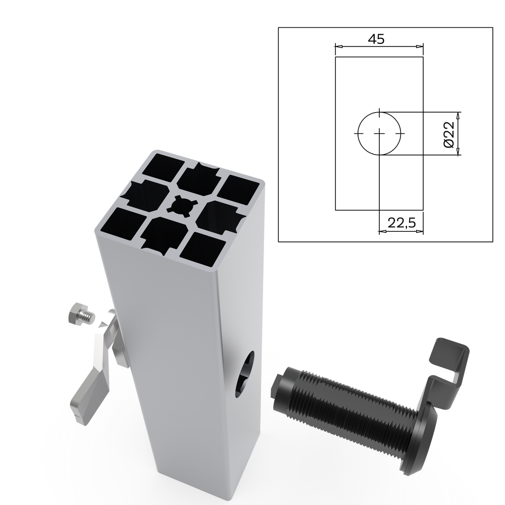 • Izvrtajte luknjo Ø 22 mm na sredini profila, priporočeno: zaščita proti zasuku F ident št.. 210941/0