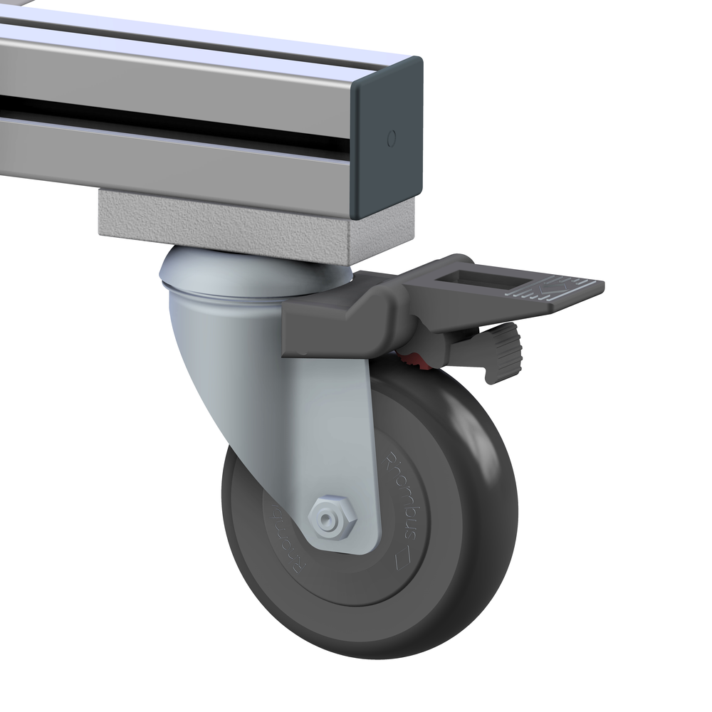 Vrtljivo kolo z zavoro D 100 x 131 za varno in stabilno pozicioniranje ter preprečevanje neželenega premikanja elementov.