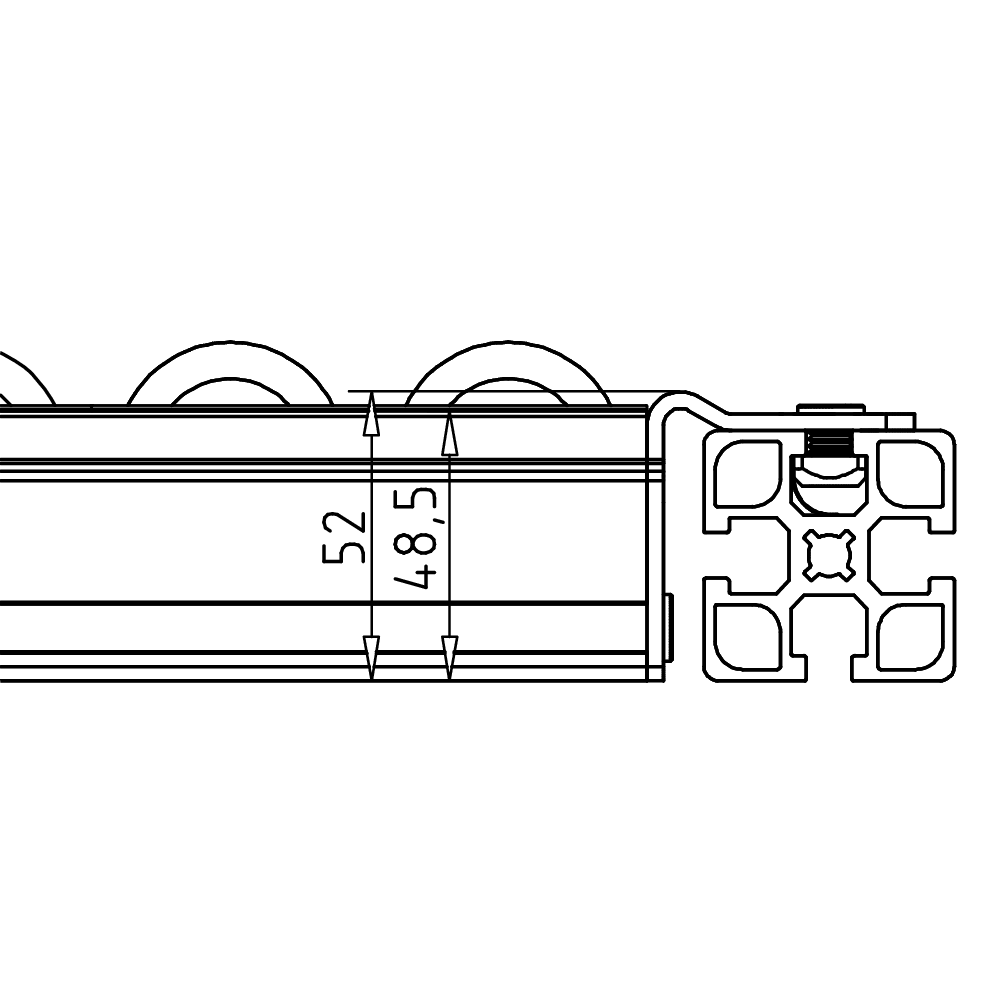• Vstavite in privijte navoj M8 v sredinski odprtini na končni ploskvi profila, nato namestite celoten valjčni trak na prečno gred in pritrdite