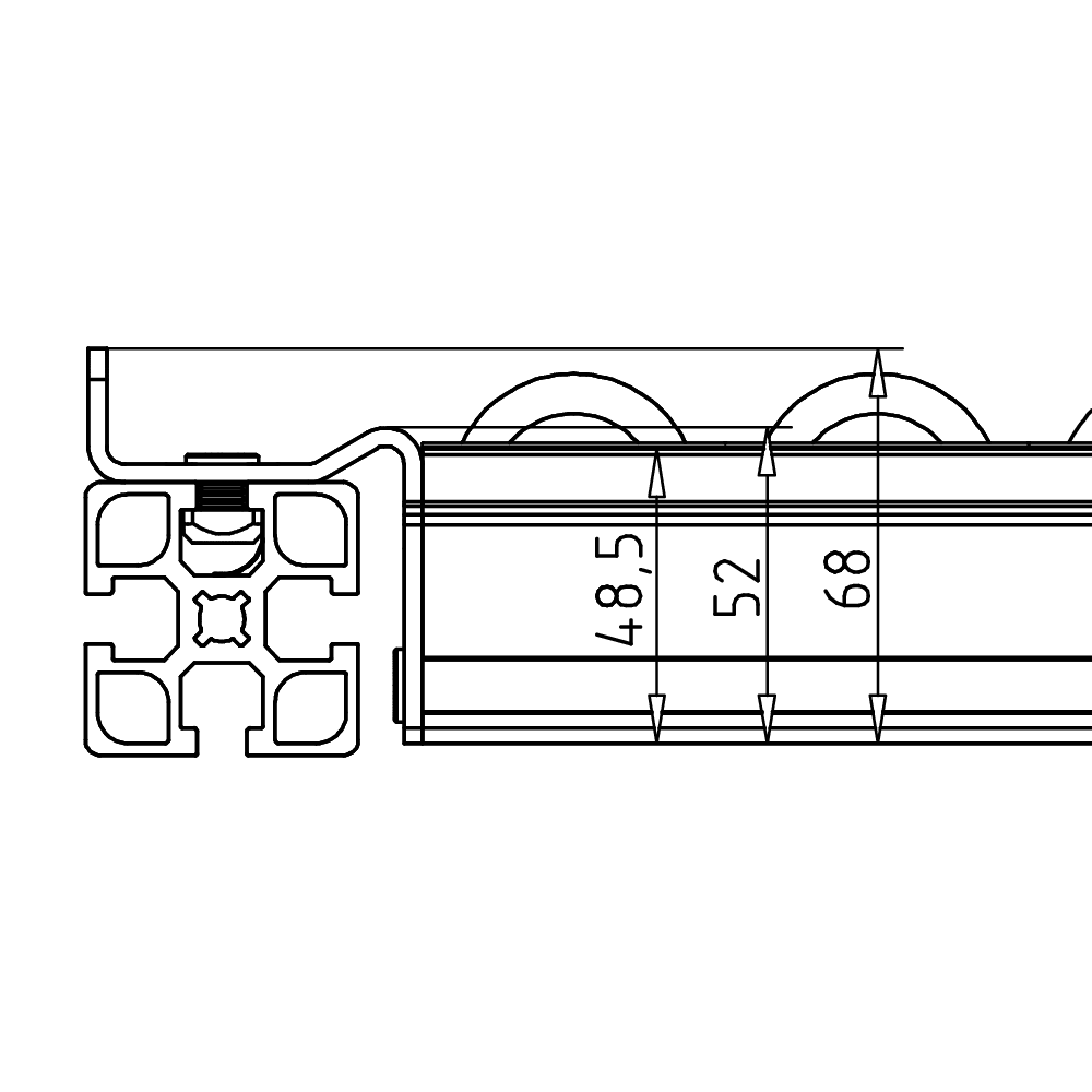 • Vstavite in privijte navoj M8 v sredinsko odprtino na končni ploskvi profila, nato namestite celoten valjčni trak na prečno gred in pritrdite