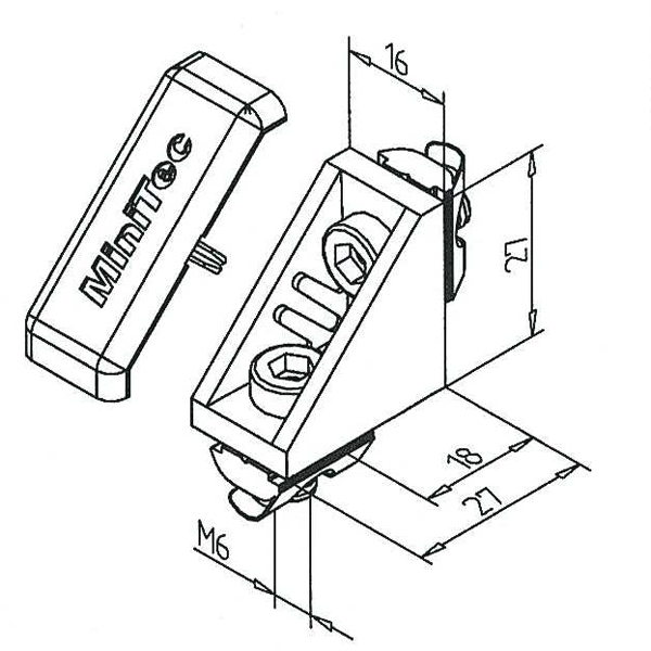 Prevodni alu kotnik 16 GD-Z za varne povezave alu profilov z zaščito pred ESD. Preprečuje statični električni naboj, primeren za občutljivo opremo.