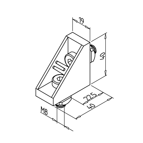 Prevodni alu kotnik 19 GD-Z za varne povezave alu profilov z zaščito pred ESD. Preprečuje statični električni naboj, primeren za občutljivo opremo.