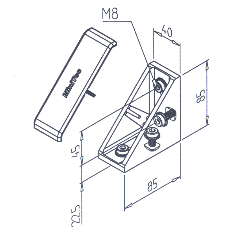 Alu kotnik 45 x 90 GD-Z z M8 kvadratno matico in pozicijskim fiksiranjem za enostavno montažo in natančno pozicioniranje brez dodatne obdelave. Povečuje stabilnost konstrukcije.