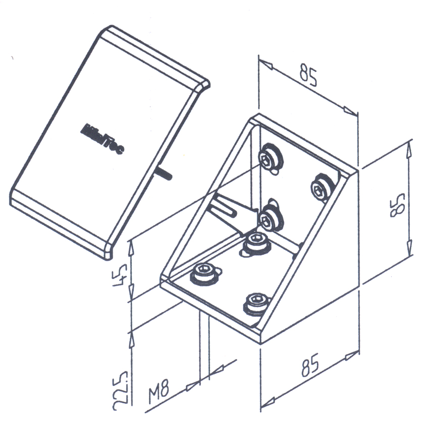 Alu kotnik 90 GD-Z z M8 kvadratno matico in pozicijskim fiksiranjem za enostavno montažo in natančno pozicioniranje brez dodatne obdelave. Povečuje stabilnost konstrukcije.