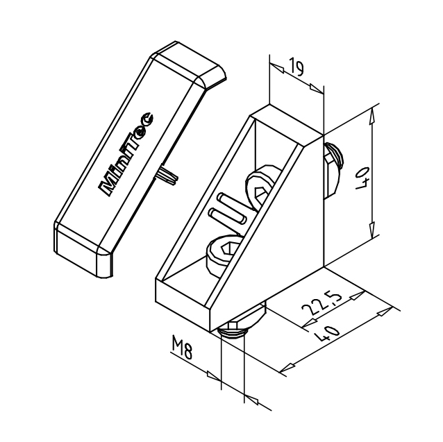 Alu kotnik 19 GD-Z z M8 kvadratno matico in pozicijskim fiksiranjem za enostavno montažo in natančno pozicioniranje brez dodatne obdelave. Povečuje stabilnost konstrukcije.
