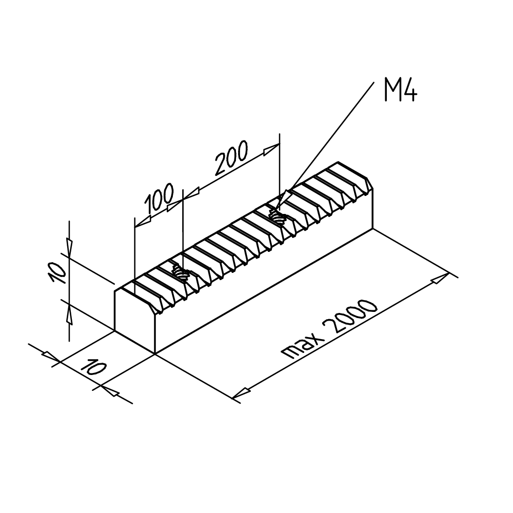 Zobata letev za zanesljivo in natančno premikanje v linearnih vodilih različnih dolžin in višinskih nastavitev.