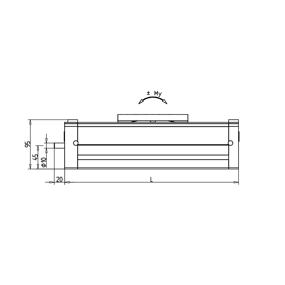 • Dve vodili, vsako opremljeno z dvema linearnima drsnikoma dimenzije 15