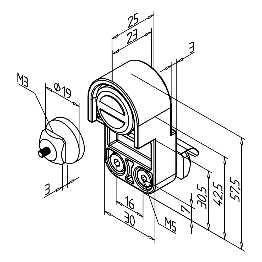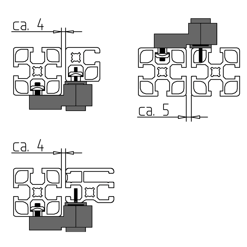 • Pritrdite zapirno ploščico neposredno na površino profila ali površinski element; za to izdelajte navoj M5