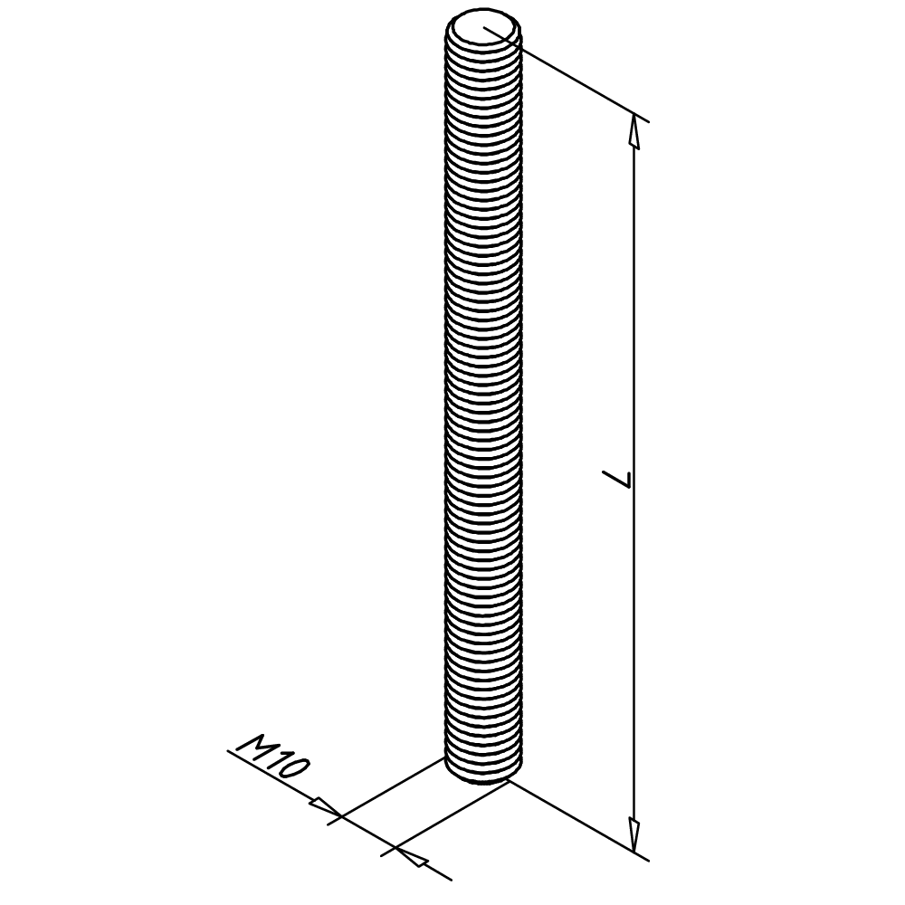 Navojna palica M10, pocinkana, razred 8.8, dolga 2 m, idealna za trdne in zanesljive spoje v industrijskih in aluminijastih konstrukcijah.