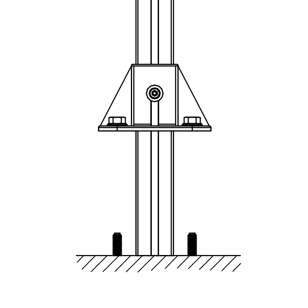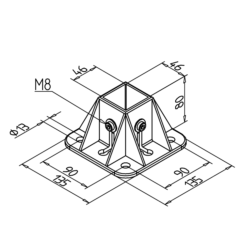 Podporna noga 45 GD za zanesljivo in trdno podporo aluminijastim profilom v konstrukcijah.