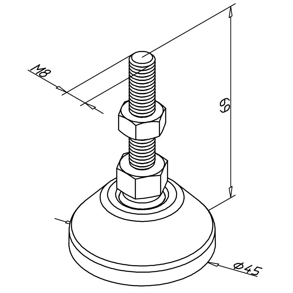 Nastavljiva noga M08 D45 L=69 z ESD zaščito za stabilno in varno pritrditev alu konstrukcij v ESD občutljivih industrijskih okoljih.