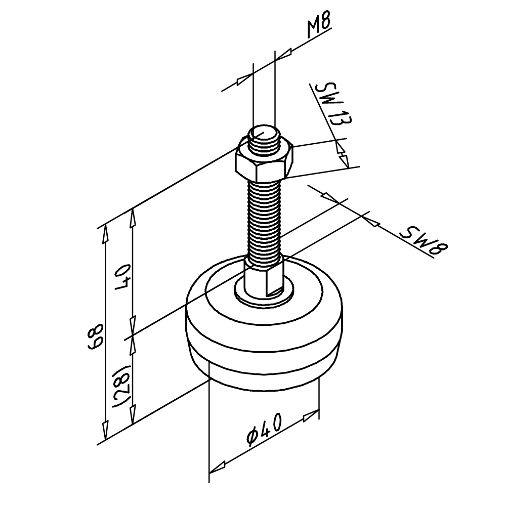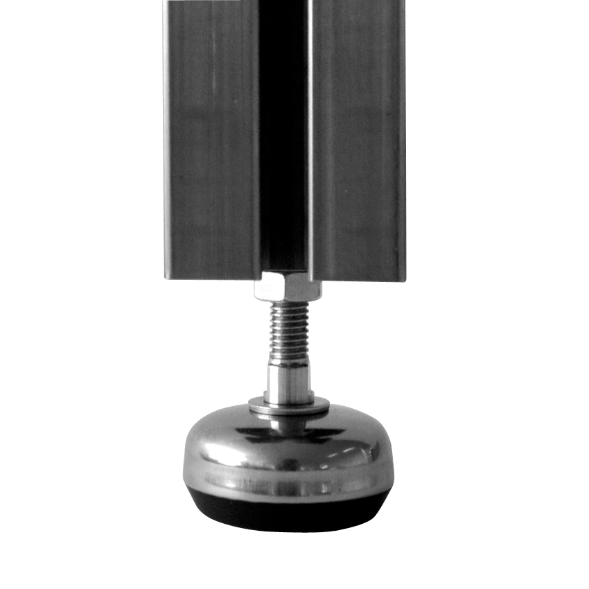 Nastavljiva nerjaveča noga M08 D40 L=68 mm za varno in stabilno pritrditev alu konstrukcij v industrijskih aplikacijah.