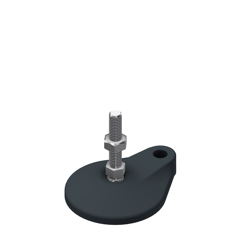 Nastavljiva noga M10 D80 z eno pritrdilno luknjo za varno podporo in prilagodljivo višino aluminijastih konstrukcij.