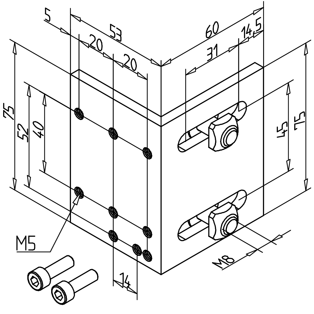 • Za uporabo na vertikalnih stebrih, kotni nosilec ident št. 211359/7 (kvadratne matice s fiksacijo položaja)