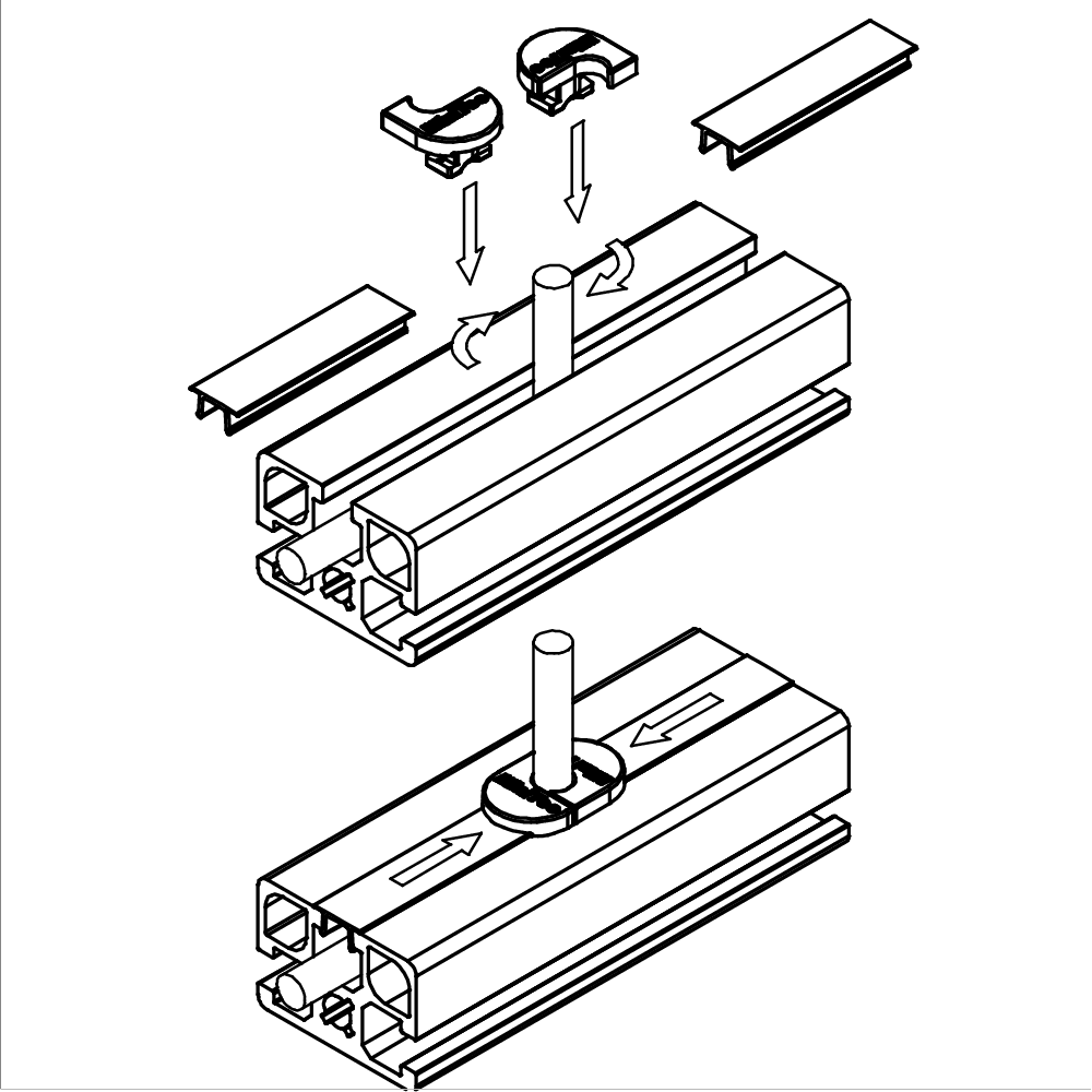 • Obe polovici zasukajte levo in desno ob kabel v utor profila, nato ju stisnite skupaj.