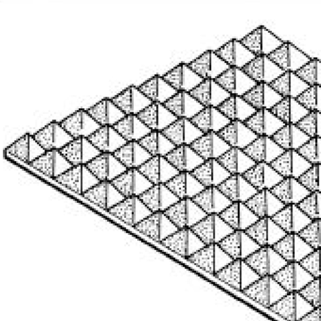 • Višina piramide 50 mm, skupna debelina plošče 70 mm, razmik piramid 100 mm