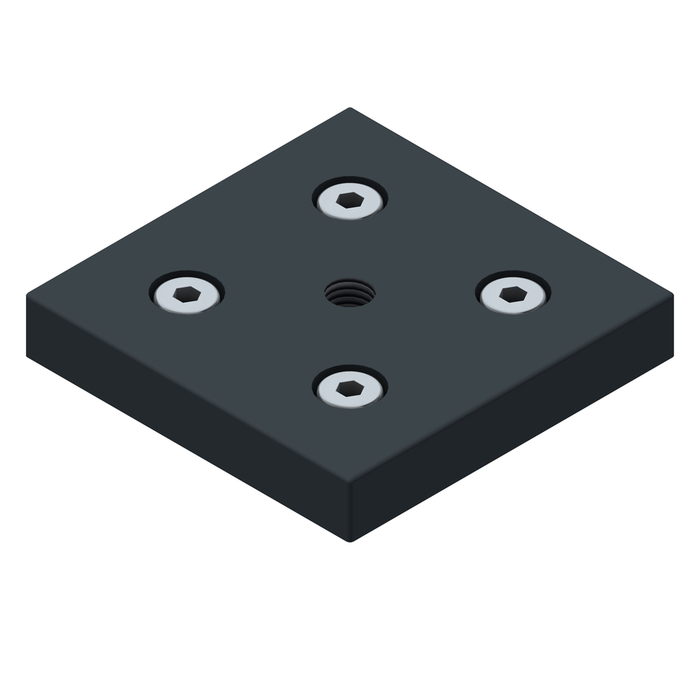 Prevodna pritrdilna plošča 90x90 M16 za namestitev gibljivih nog in koles na aluminijaste profile, ki zagotavlja fleksibilnost in stabilnost različnih konstrukcij.