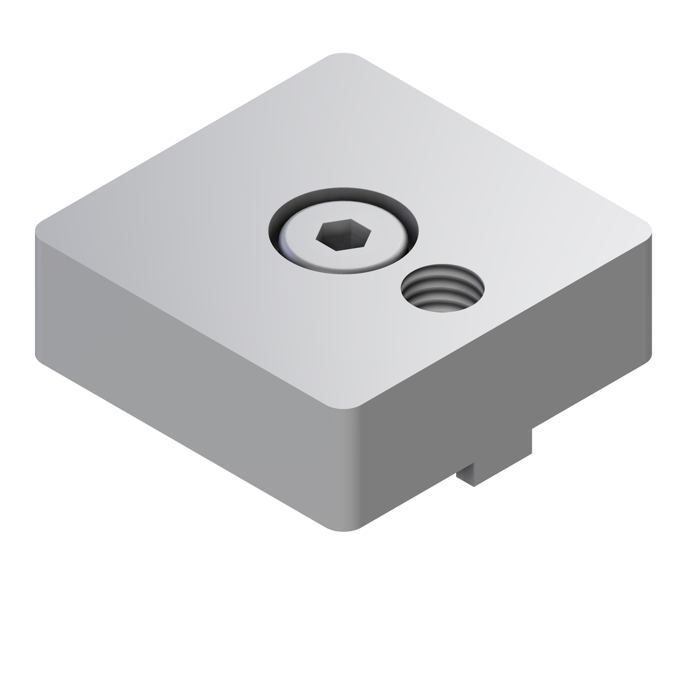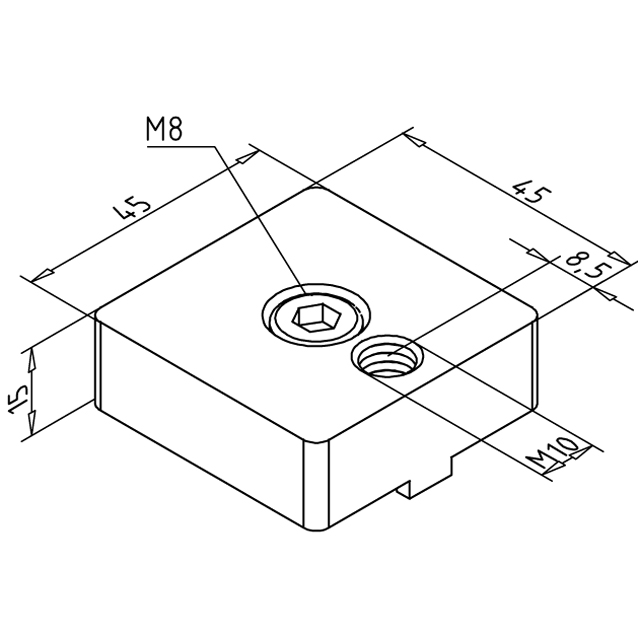 Pritrdilna plošča iz nerjavečega jekla 45x45 M10 za namestitev gibljivih nog in koles na aluminijaste profile, ki zagotavlja trpežno, fleksibilno in stabilno podporo različnim konstrukcijam.