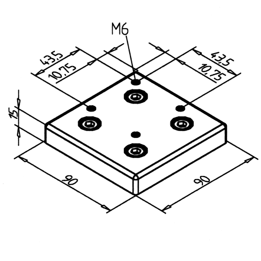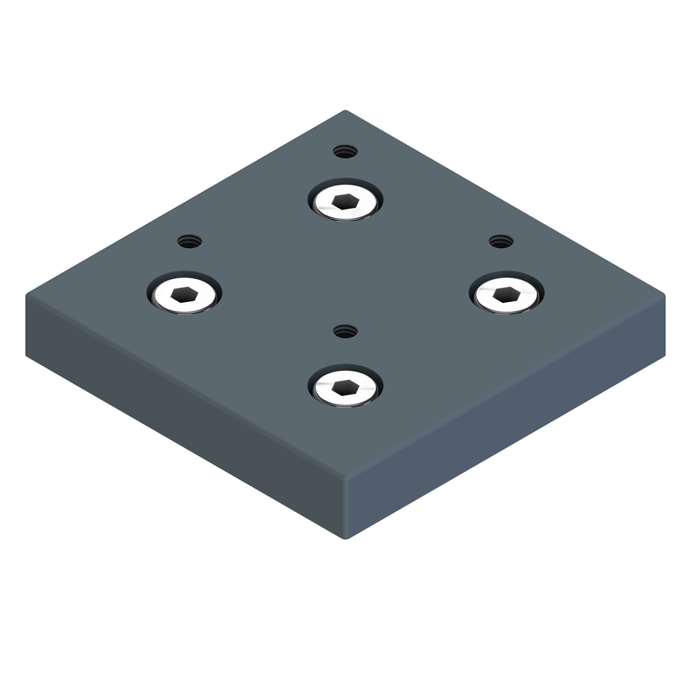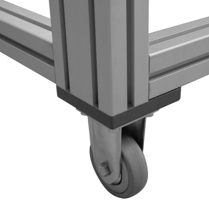 Pritrdilna plošča 90 za varno pritrjevanje fiksnih koles na konstrukcije iz aluminijastih profilov.