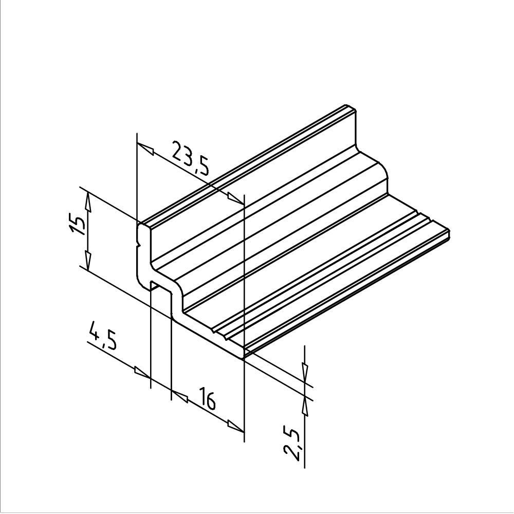 • Aluminij, ekstrudiran, anodiziran E6/EV1