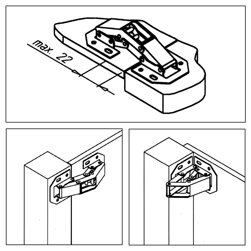 Pomikajoči tečaj za vrata zaščitnih enot, omogoča enostavno odpiranje in zapiranje s trdno in zanesljivo montažo.