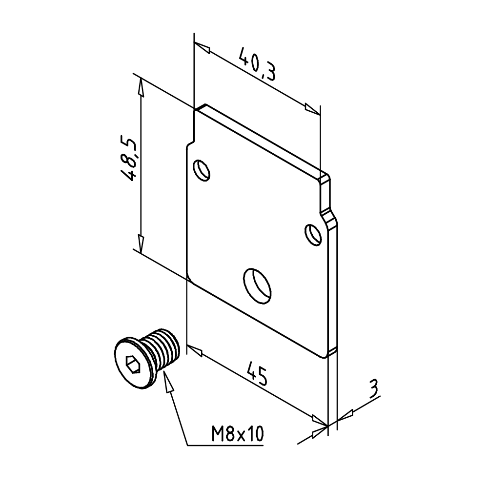 • Vstavite in privijte navoj M8 v osrednji preboj na končni ploskvi profila