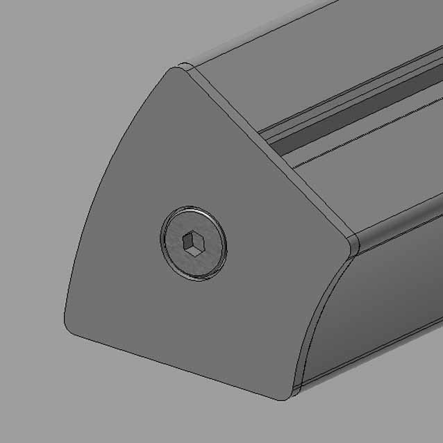 Pokrov profila 45 R 30°. Aluminijast zaključni pokrov za zaščito robov alu profilov. Enostavna montaža, zanesljiva zaščita.