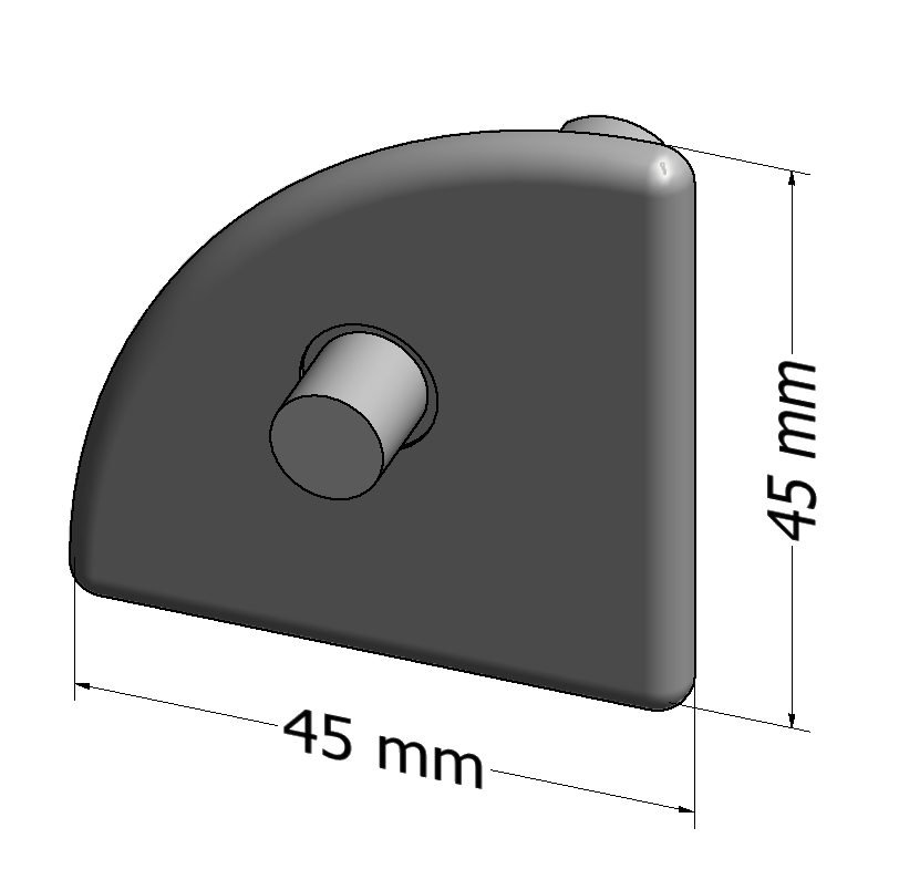 Pokrov profila 45 R 90°. Plastični zaključni pokrov za zaščito robov alu profilov. Enostavna montaža, zanesljiva zaščita.