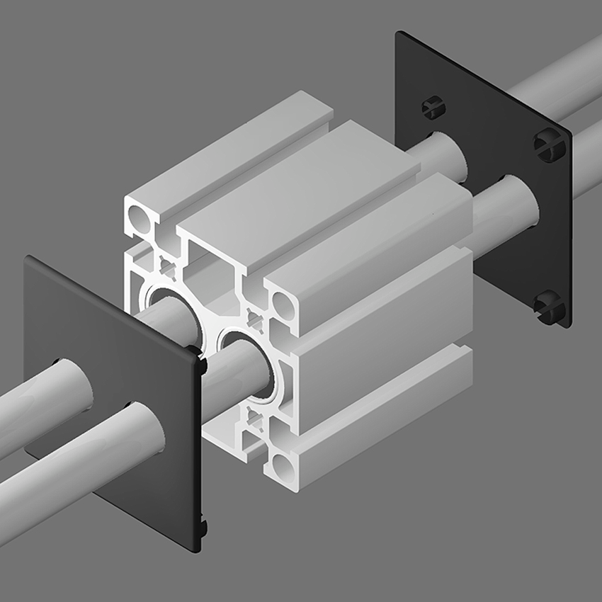 Zaključni pokrov LB 90 v črni barvi zagotavlja estetsko in varno zaprtje linearnega vozička ter podpornega bloka ob strani gredi.