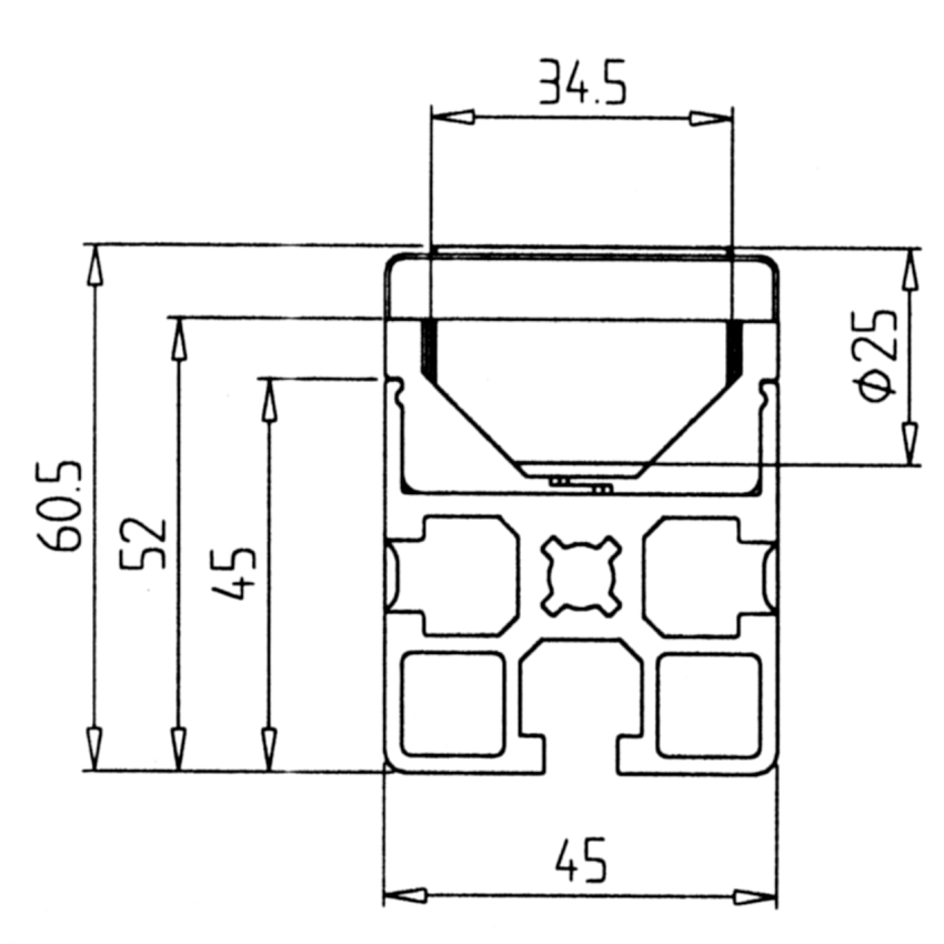 Za daljše trakove valjev ali večje obremenitve priporočamo: - vstavitev vzdolžnih ali prečnih konstrukcijskih profilov spodaj za podporo - vstavitev traku valjev v profil 45 FRS, ident št.201152/0 S tem je mogoče tudi pokriti prostore med valji; dosežena je višina sistema (SH) 54 mm