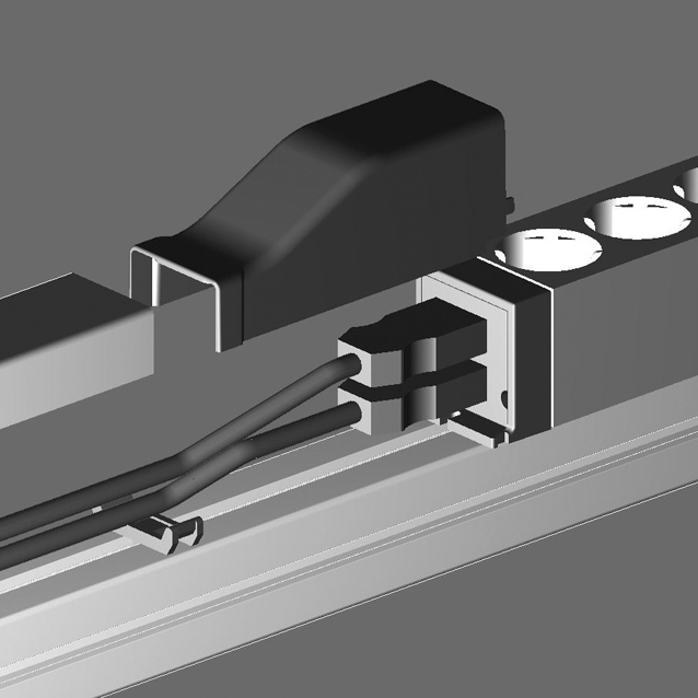 Pokrov za adapterje za kabelski kanal 45, ki omogoča enostavno povezavo in estetski zaključek aluminijastega kanala.