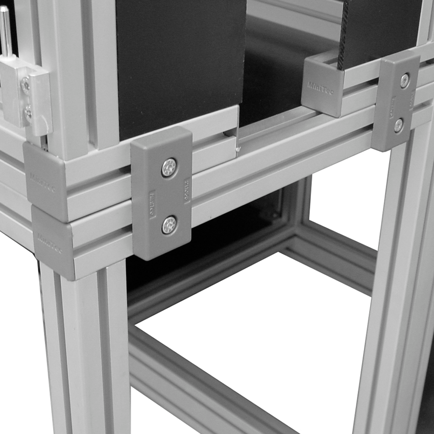 Povezovalna ploščica 45 x 90 za trdno povezavo dveh zaščitnih enot iz alu profilov brez vrzeli. Uporablja se za ojačitev enot in povezavo že sestavljenih modulov za stabilno konstrukcijo.