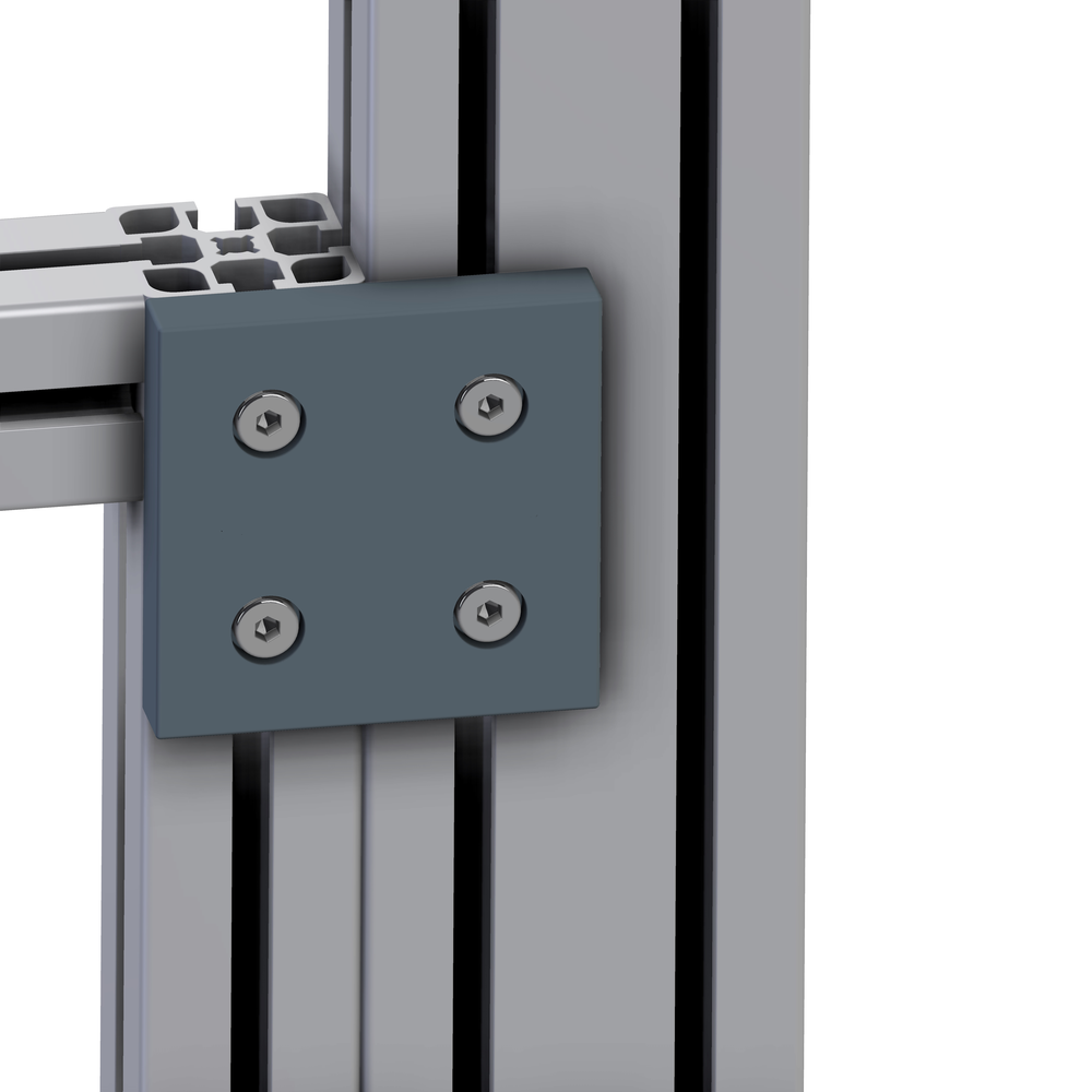 Povezovalna ploščica 90 x 90 za trdno povezavo dveh zaščitnih enot iz alu profilov brez vrzeli. Uporablja se za ojačitev enot in povezavo že sestavljenih modulov za stabilno konstrukcijo.