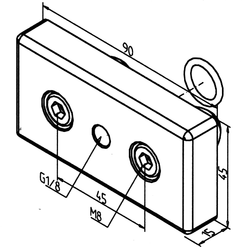 • Stranski priključek za dovod ali odvod stisnjenega zraka na profilih 45 x 90 in 90 x 90