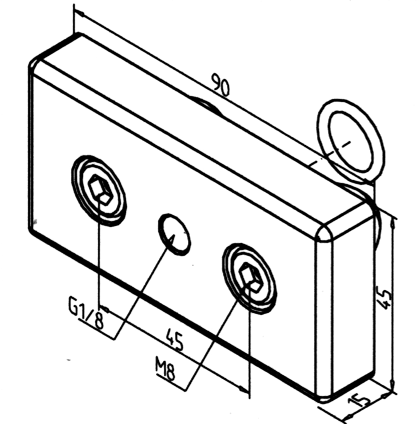 Pnevmatska osnovna plošča 45 z navojem G3/8" za enostavno pritrditev in povezavo pnevmatskih komponent v profilnih sistemih.
