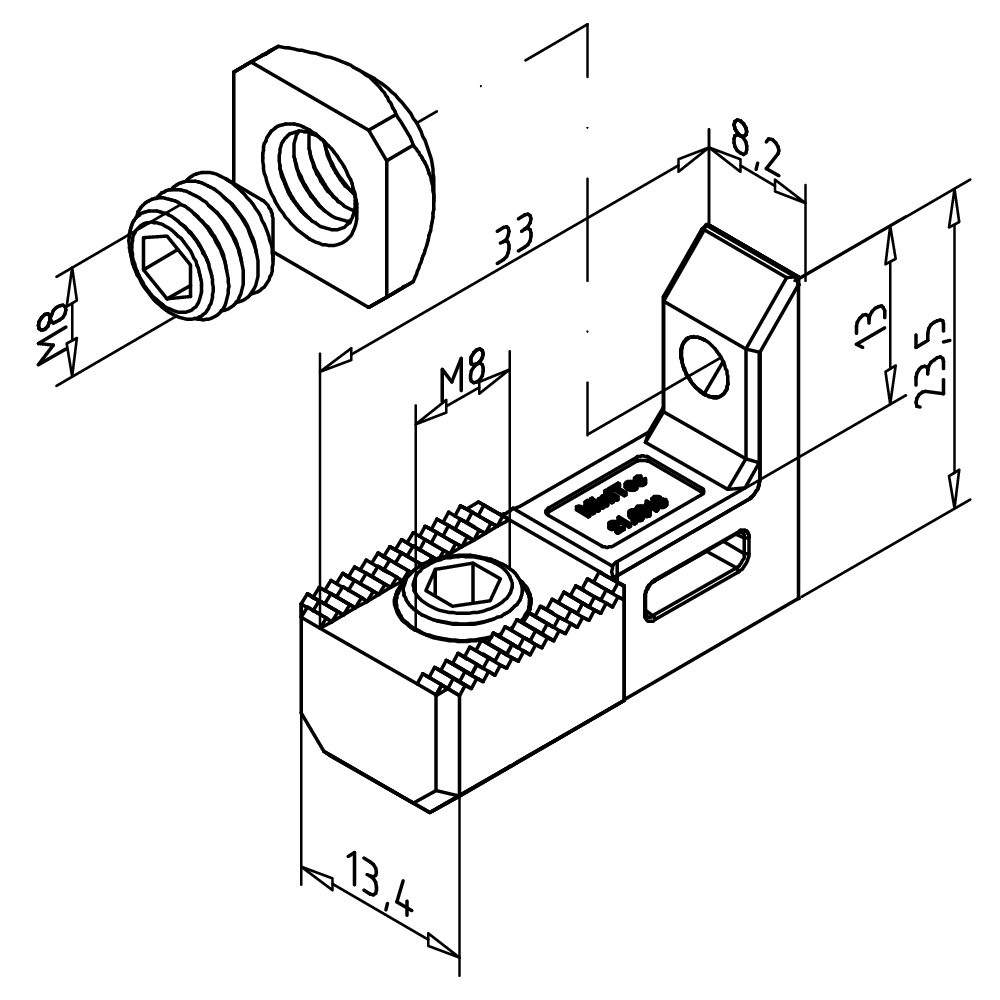 • 1 drsna matica M8 s predhodno nameščenim zateznim vijakom