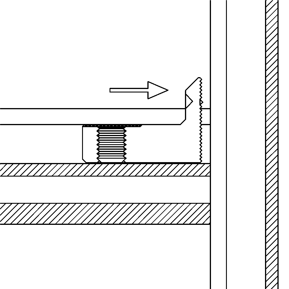 • Zasukajte in privijte drsno matico s prirobnim vijakom